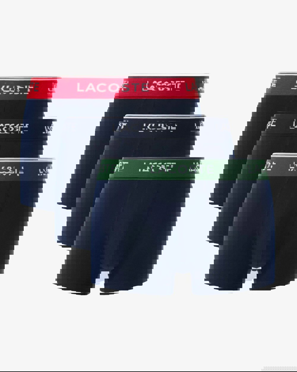 Lacoste 3-Pack Mens Trunks in Navy Blue/Green-Red-Navy HY0