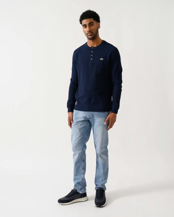 A clean, modern staple from Lacoste, the Boxy Tunisian Neck Men’s Knit T-Shirt in Navy Blue 166 brings a distinctive neckline to a short-sleeve silhouette. Model TH1300-00 is made in a knit construction with cotton, polyester and elastane, with separate compositions across the shell, rib edge and yoke.