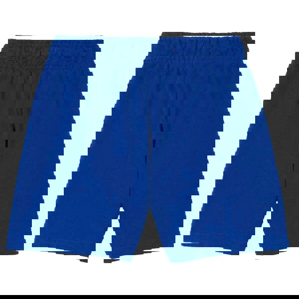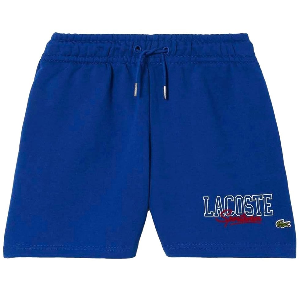 Lacoste childrens/kids fleece print shorts in blue. Made from organic cotton with a fleece fabric finish, they combine a plain base with printed and embroidered details, including a logo.