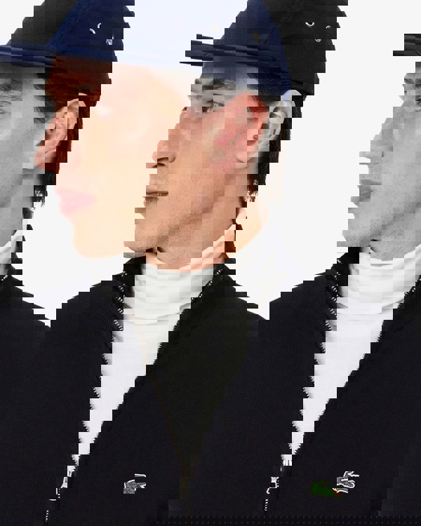 This zipped sweater is the fruit of 90 years of Lacoste knitwear expertise. Made from a soft, comfortable cotton jersey fabric, with minimal lines and sophisticated finish details including a high, ribbed neck. A blend of fashion and sporting style, finished with a signature crocodile.