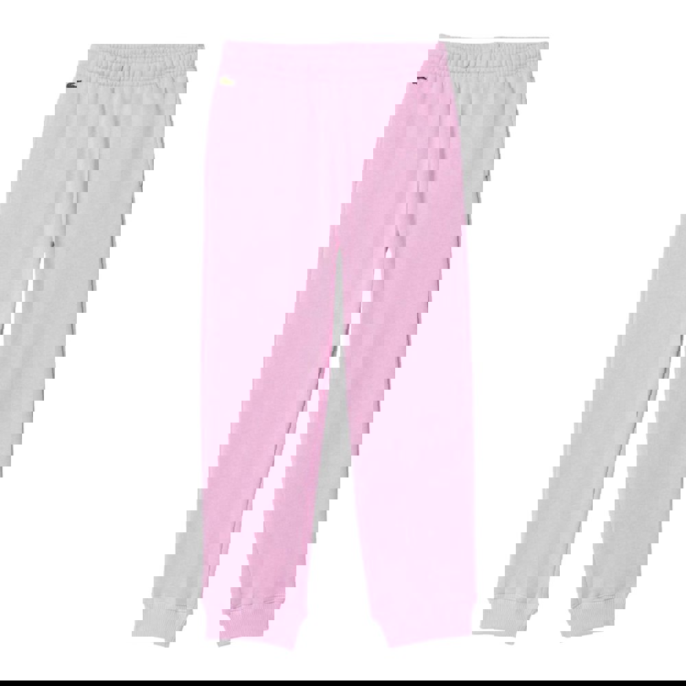 These Lacoste kids jogging bottoms come in pink brushed fleece with a soft-touch finish. The fabric blend combines 69% organic cotton with 31% recycled polyester, keeping the look simple with a plain design and an embroidered logo.