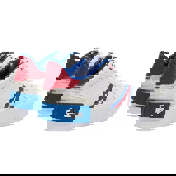 Lacoste Kids L004 trainers in white and red with a low-cut profile and flat sole. The upper and lining are made from textile, paired with a rubber outsole. A round toe shape and lace-up fastening keep the look classic and secure, while contrast detailing and logo accents add a clean, sporty finish.