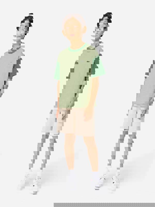 This Lacoste Kids boys T-shirt comes in green with a colourblock design and a relaxed fit. The front is finished with the brand’s signature crocodile embroidery for a recognisable Lacoste look.