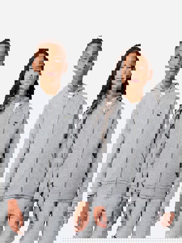Lacoste Kids Core fleece full zip hoodie in grey. A practical layer with a full-length zip fastening and a classic hooded silhouette. The soft fleece construction keeps the look casual, while the signature Lacoste crocodile logo adds a recognisable branded finish.