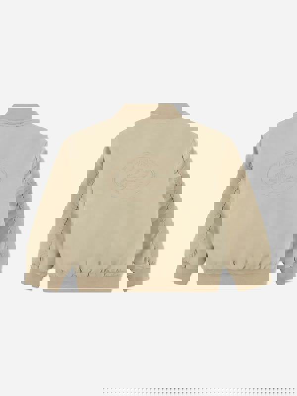 This Lacoste boys bomber jacket comes in beige for a clean, classic look. Made from nylon, it offers a lightweight outer layer for everyday wear. The design includes the iconic Lacoste croc emblem for subtle brand detail.