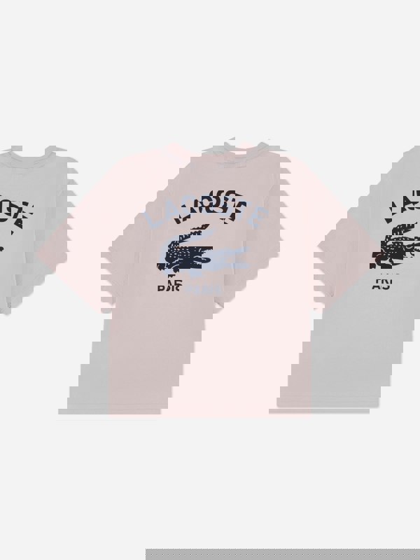 Lacoste Kids girls logo T-shirt in pink. A simple wardrobe staple with a clean finish and signature branding, it suits everyday wear across the AW2025 season. The front carries the Lacoste crocodile logo, keeping the look recognisable and classic.