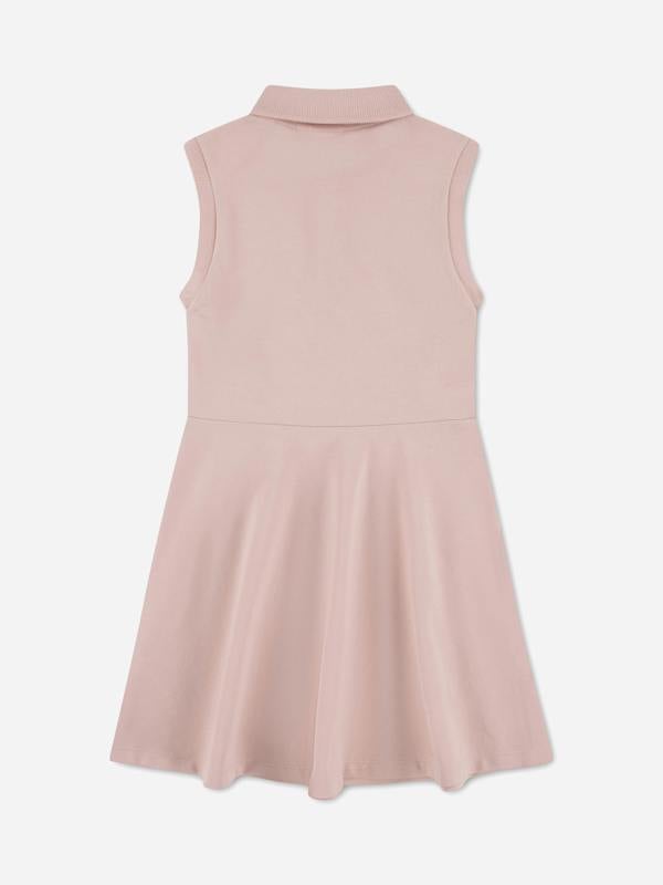 Lacoste Kids sleeveless polo dress in pink for the SS2026 season. The design uses piqué material and a sleeveless cut, finished with an embroidered crocodile emblem.
