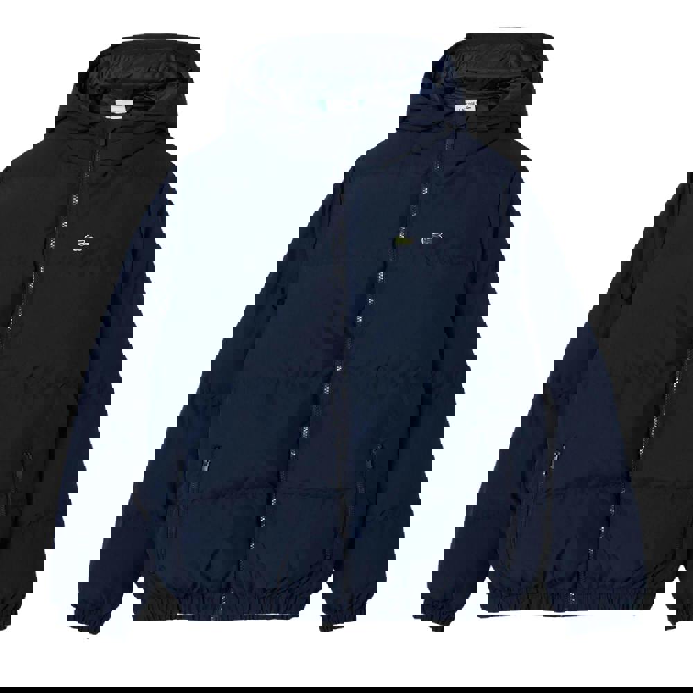 This Lacoste Kids padded jacket comes in navy with a quilted finish and an embroidered logo. Made from recycled polyester, it uses lightweight, water repellent fabric technology for practical wear. A hooded neckline and long sleeves provide coverage, while elasticated cuffs and an elasticated hem keep the shape neat.