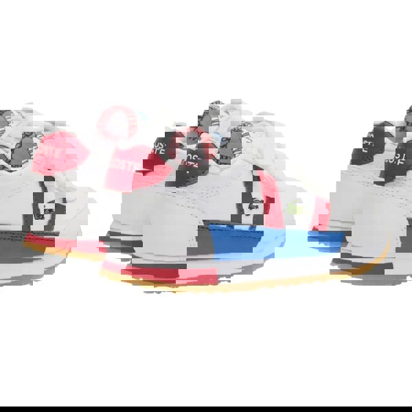 Lacoste Kids Partner Trainers in white and red combine a nylon and PU (polyurethane) upper with a textile lining and a rubber outsole. A branded insole sits inside for a finished look. The flat profile and round toe create a clean, classic trainer shape.