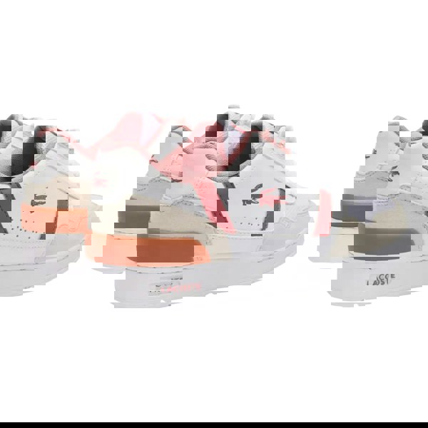 These Lacoste Kids T-Clip trainers come in a white and pink colourway with a low-cut profile and flat sole. The upper combines PU (polyurethane) and synthetic materials, finished with contrast detailing and a perforated construction. An embroidered logo adds a branded touch, while the round toe keeps the shape classic and simple.