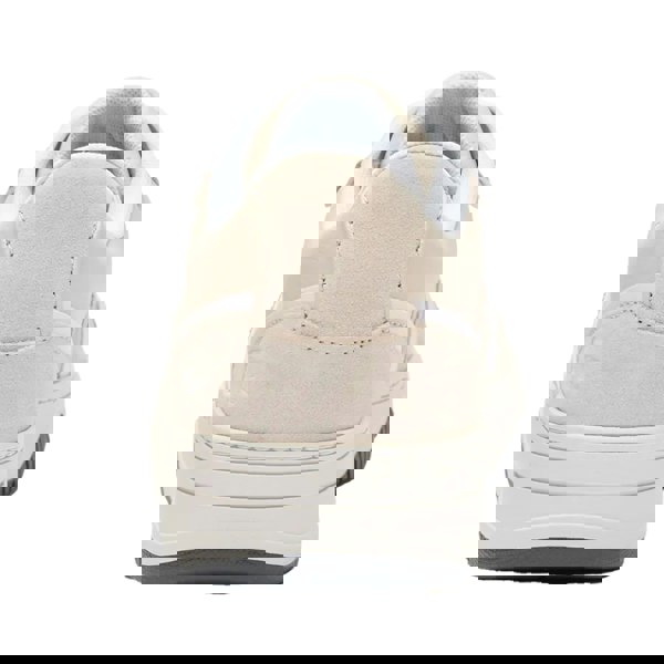 Lacoste L001 trainers in off white with a low-cut profile and flat sole. The upper combines leather and synthetic materials with a soft-touch finish, while perforation adds detail across the design. Contrast accents and a logo complete the clean, sporty look.