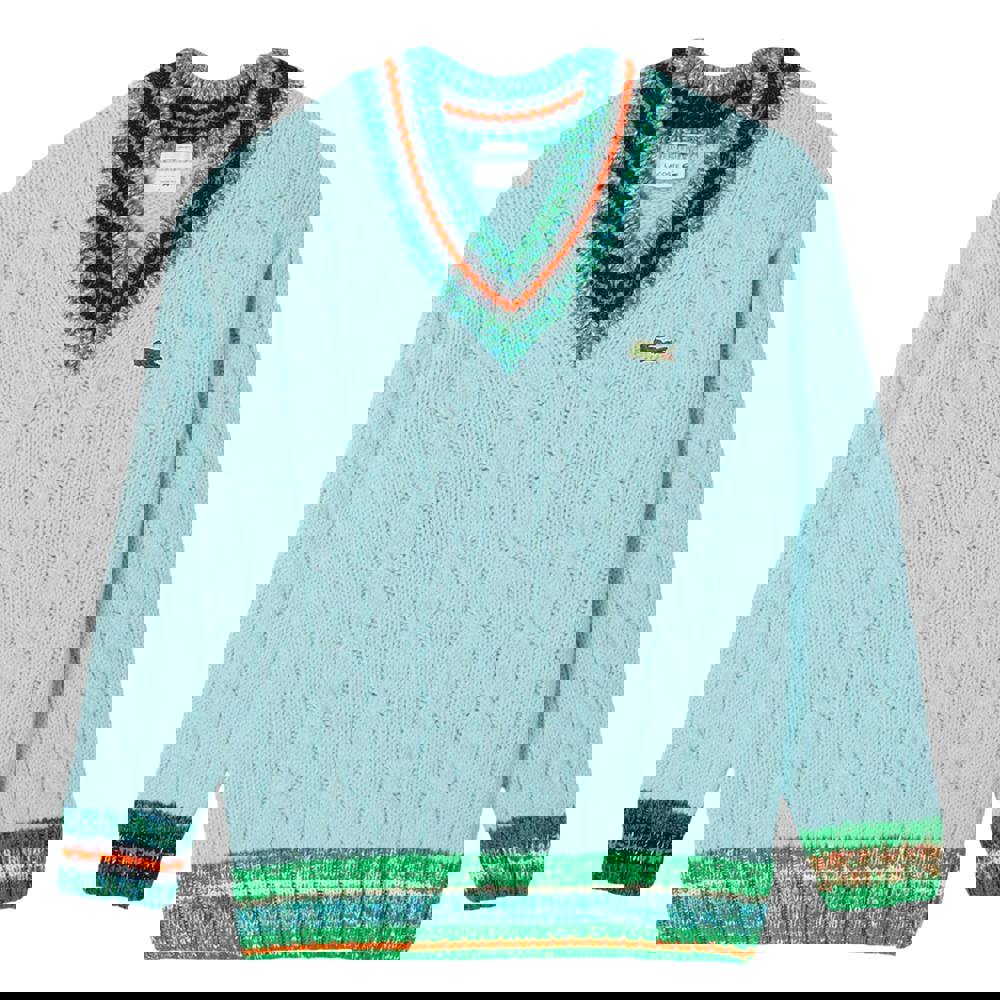 This men’s Lacoste sweatshirt is made in a cable knit fabric with a contrast colour design. It has a fitted shape with a pull over construction for straightforward wear.