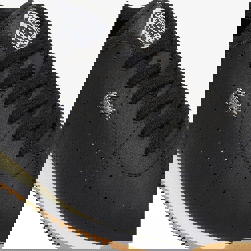 Lacoste Club Leather low trainers in black with a plain finish and logo detailing. The upper combines leather and suede, with a round toe and flat profile. A lace-up fastening runs through seven eyelets for a secure fit.