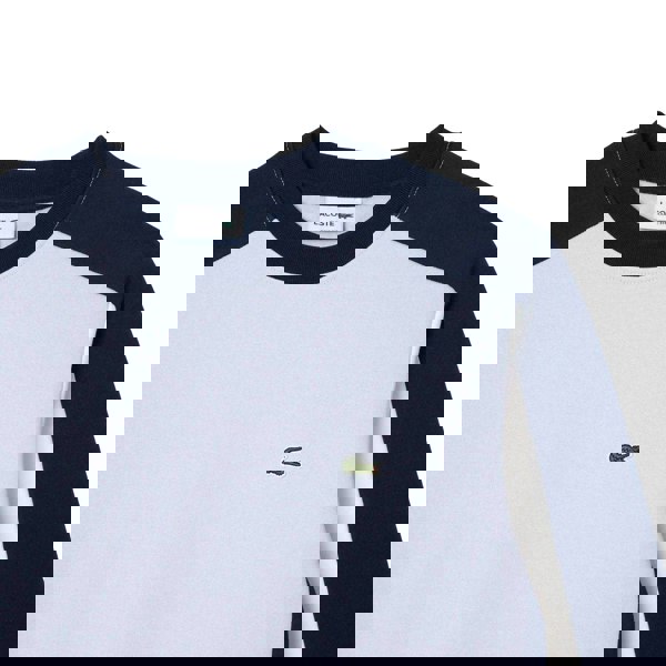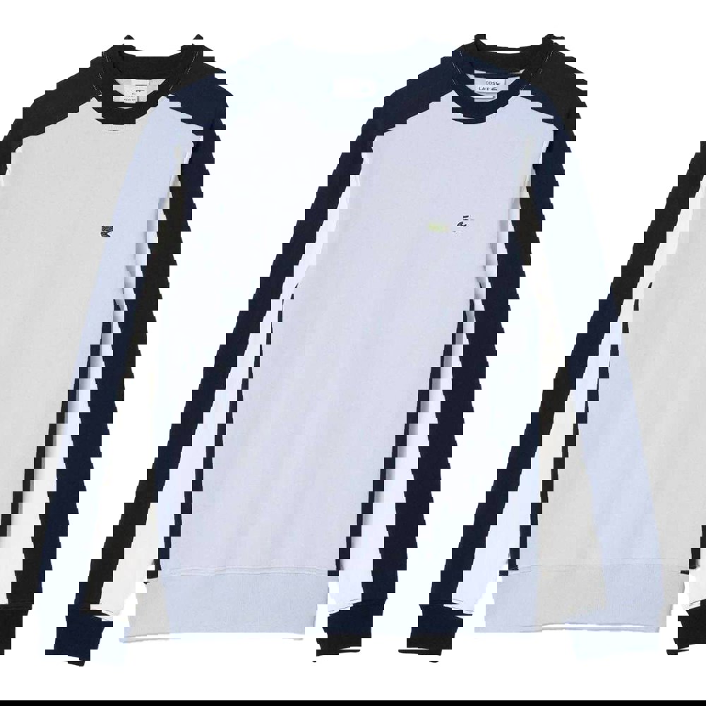 This Lacoste men’s sweatshirt is made from 80% organic cotton and 20% recycled polyester, with a brushed fleece fabric and a soft-touch finish. It comes in a blue and white colour-block design with an embroidered logo and cut-and-sew panelling for a defined look.