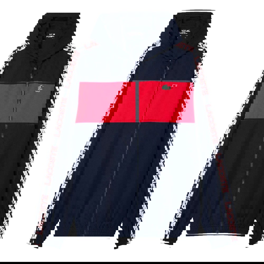 Crafted in diamond taffeta with a mesh lining, this Lacoste men’s hoodie combines a lightweight, breathable feel with a water-repellent finish. The navy colour-block design is finished with logo detailing, including a silicone logo, for a clean, sporty look.