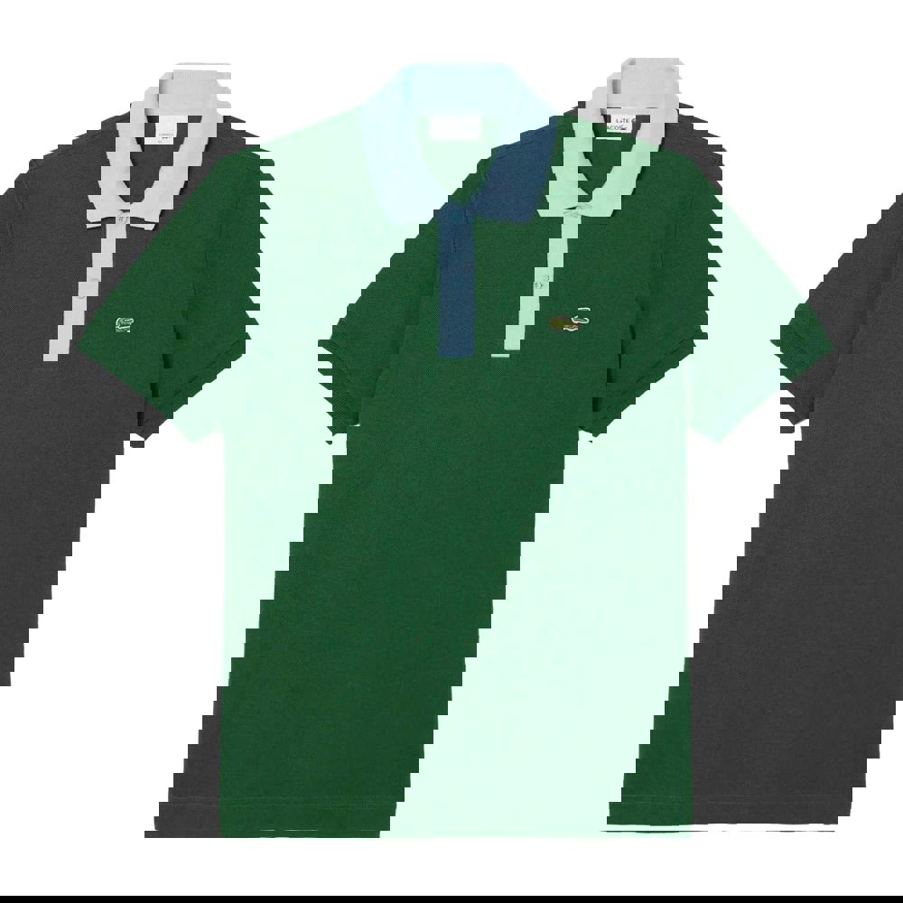 This Lacoste men’s polo shirt comes in green with a plain finish and an embroidered logo. Made from 100% cotton, it has a classic fit and short sleeves for a clean, casual look.
