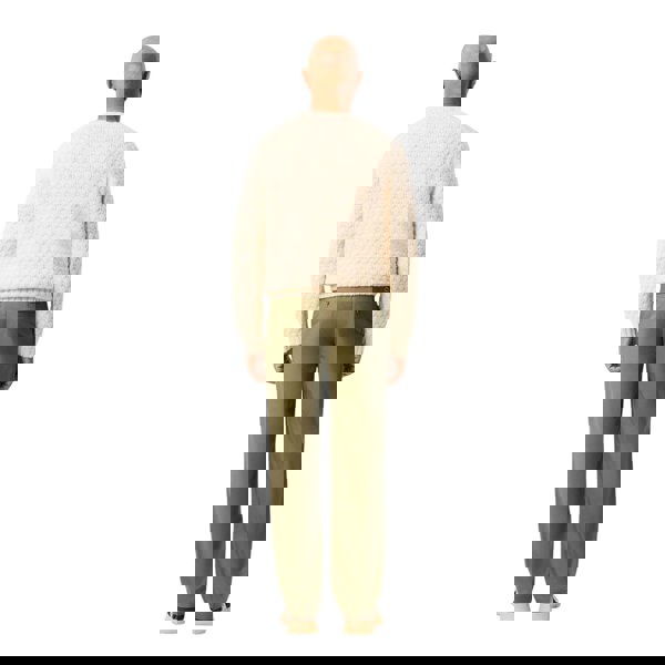A button fastening and zip fly keep the front neat, while belt loops allow styling with a belt. Practical storage comes from two side pockets and two back pockets with buttoned closures.