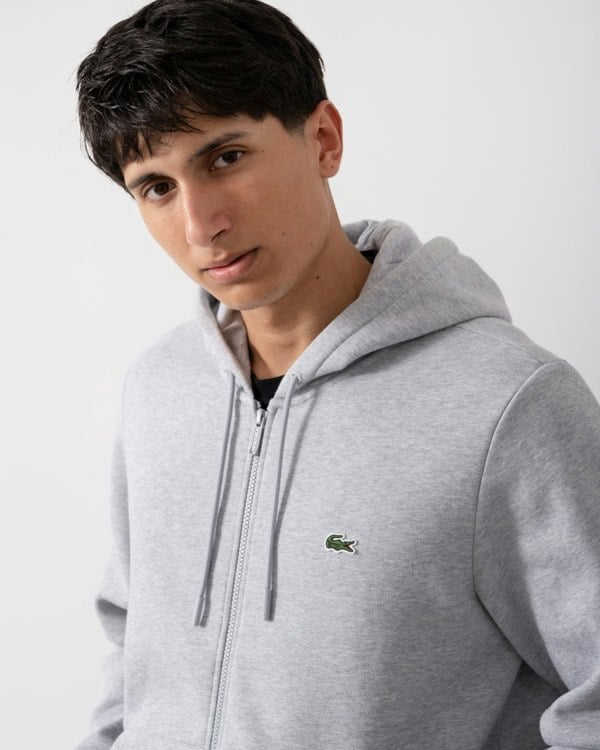 Lacoste Mens Fleece Full-Zip Hoodie in Silver Chine CCA