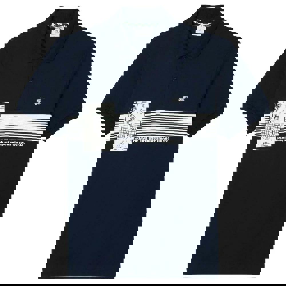 Made in 100% organic cotton, this Lacoste men’s polo shirt offers a classic fit with a collared neckline and short sleeves. The drop-sleeve cut keeps the silhouette relaxed, while contrast neck tape adds a clean internal finish.