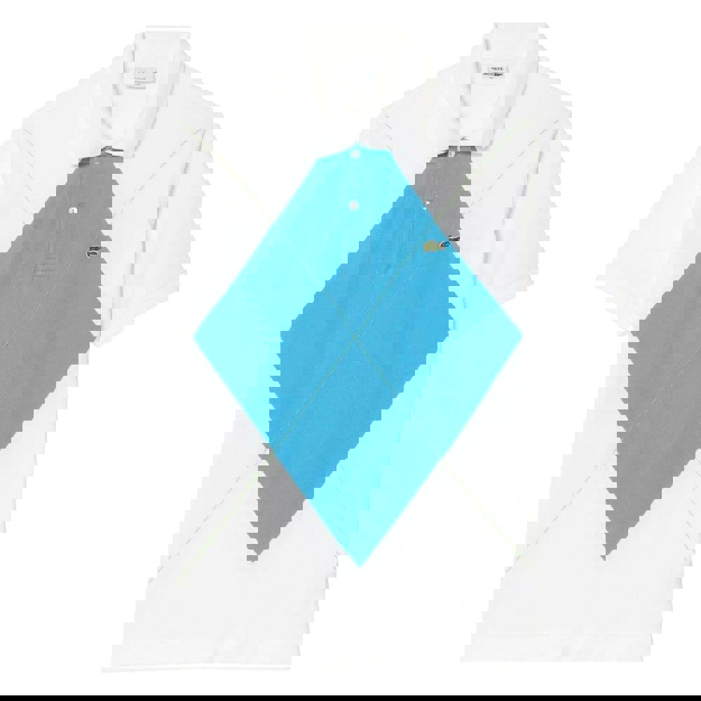 This Lacoste polo shirt is made from organic cotton in a piqué fabric. It comes in a white and blue colourway with an argyle design and an embroidered logo for a clean, graphic finish.