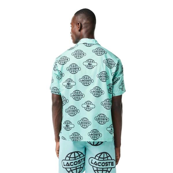 This Lacoste men’s shirt is made from 100% cotton twill and finished in mint. A graphic print and logo detail add a bold look, while the fold-down neckline keeps the design classic. Short sleeves and a relaxed fit make it suitable for casual wear.