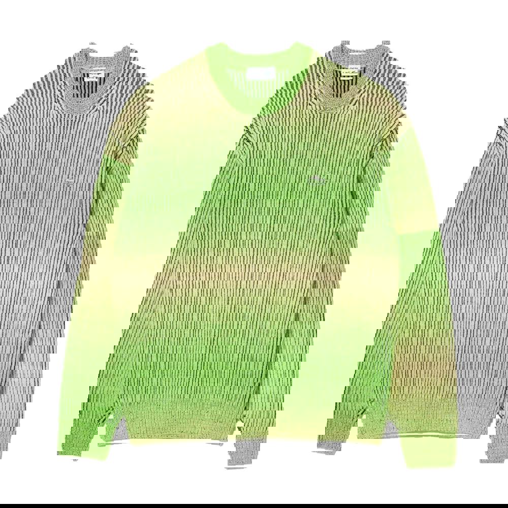 This Lacoste men’s sweatshirt comes in a green and black ombre design with logo detailing. Made from a wool blend, it uses 5 gauge dyed yarn for a distinctive finish. The crew neck and long sleeves create a classic sweatshirt shape, while ribbed trims at the hem and cuffs add structure.