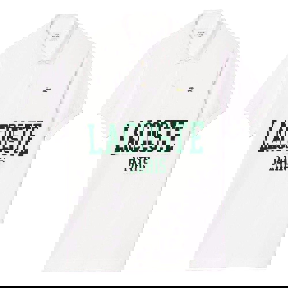 This Lacoste polo shirt is made from organic cotton in a piqué fabric. It has a collared neckline and short sleeves, finished with fitted cuffs for a neat outline. The front fastens with a two-button placket, complete with mother of pearl buttons.