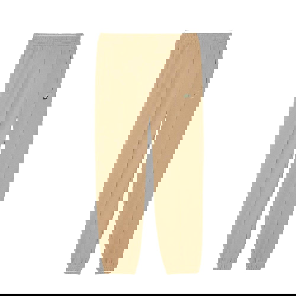 These Lacoste men’s jogging bottoms are made from organic cotton in a piqué fabric. The plain beige finish is completed with an embroidered logo and contrast top stitching for a clean, considered look suited to casual wear.