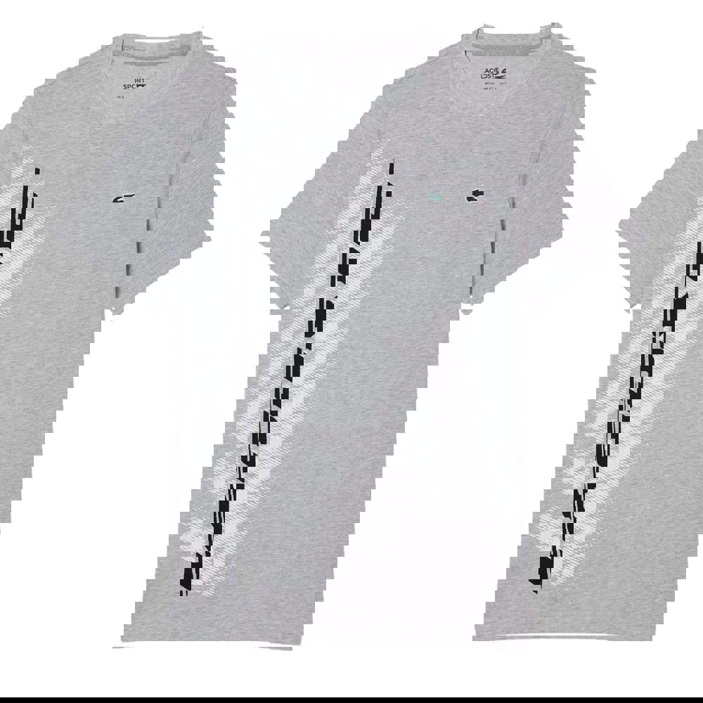 This Lacoste men’s T-shirt comes in grey with a regular fit and a classic crew neckline. It is made from a cotton and polyester blend and finished with short sleeves for everyday wear.