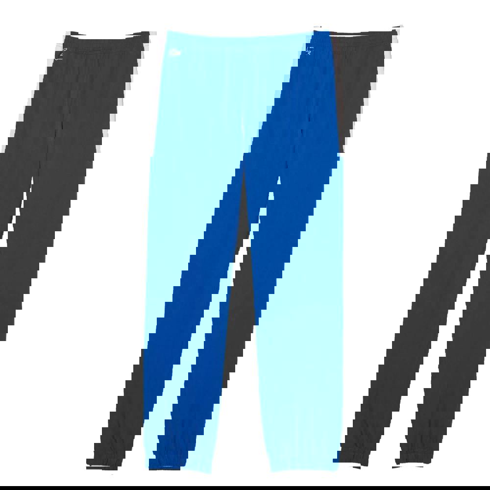 These Lacoste sport jogging bottoms come in blue with a regular fit and a plain finish, detailed with an embroidered logo. The outer is made from 100% recycled polyester, with a lining in mesh and taffeta for a layered internal construction. Water resistant fabric technology adds practical protection for everyday wear.
