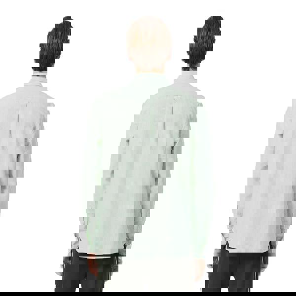 This Lacoste men’s shirt is made from 100% cotton in Oxford cloth. It comes in white with a striped design and logo detailing, finished with mother of pearl buttons. The long-sleeved silhouette is cut to a regular fit and fastens with a button-down front.