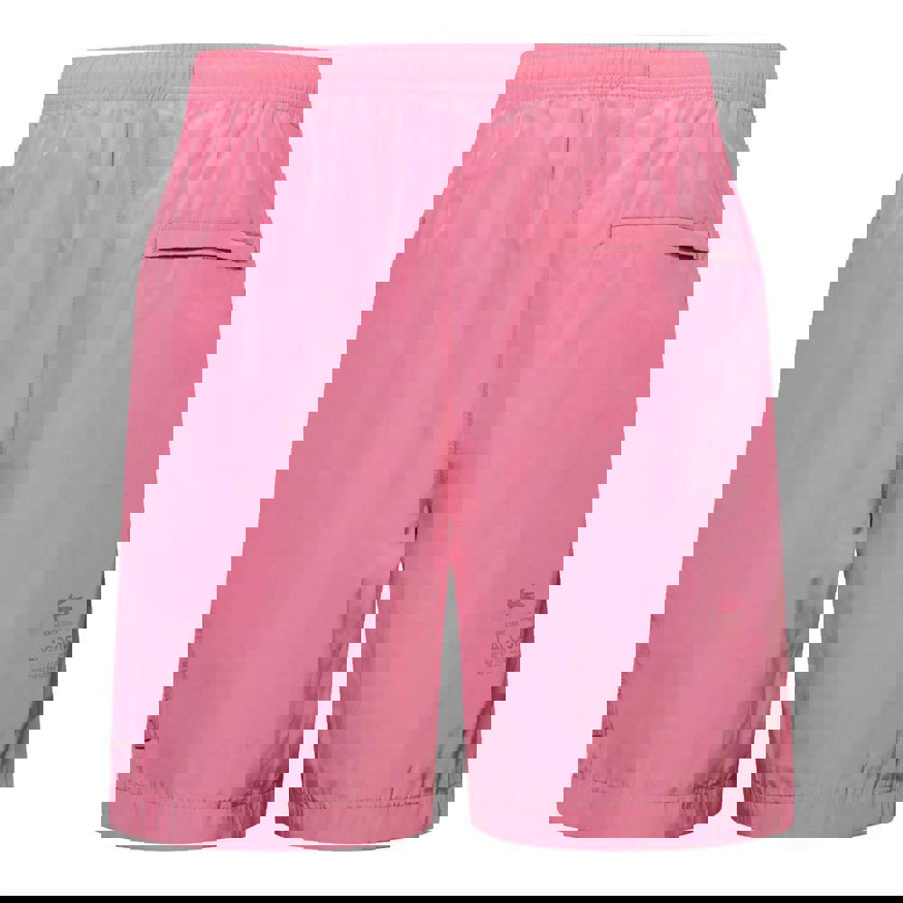 These Lacoste men’s shorts are made from 100% polyester taffeta with a showerproof finish. The bubblegum pink design is plain with embroidered detailing and a silicone logo for a clean, branded look.