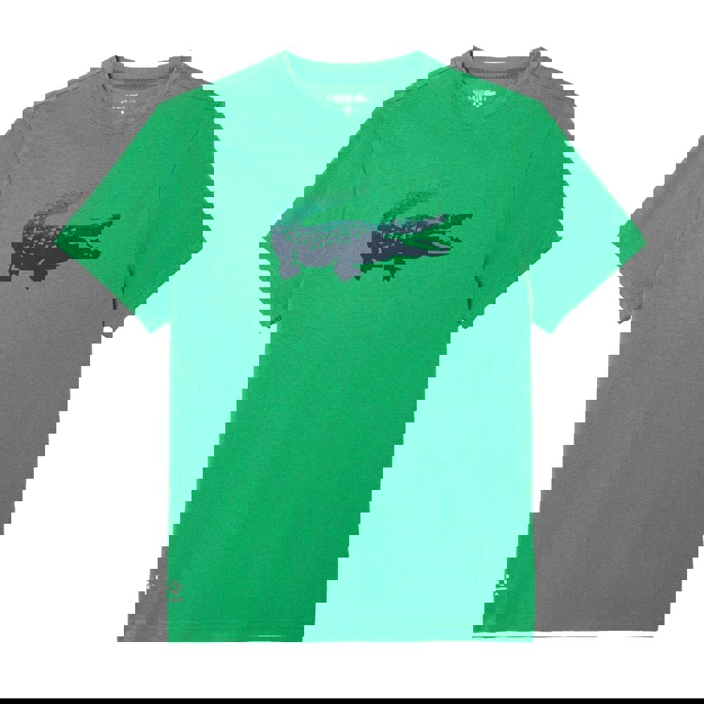 This Lacoste men’s Tennis X Daniil Medvedev T-shirt comes in green with a printed logo design. Made from a cotton, elastane and polyester blend, it uses a jersey, technical fabric construction. A crew neckline and short sleeves keep the look clean and straightforward for everyday wear.