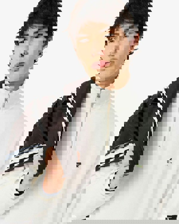 Lacoste Mens Zippered Stand-Up Collar Cotton Sweatshirt in Flour 70V
