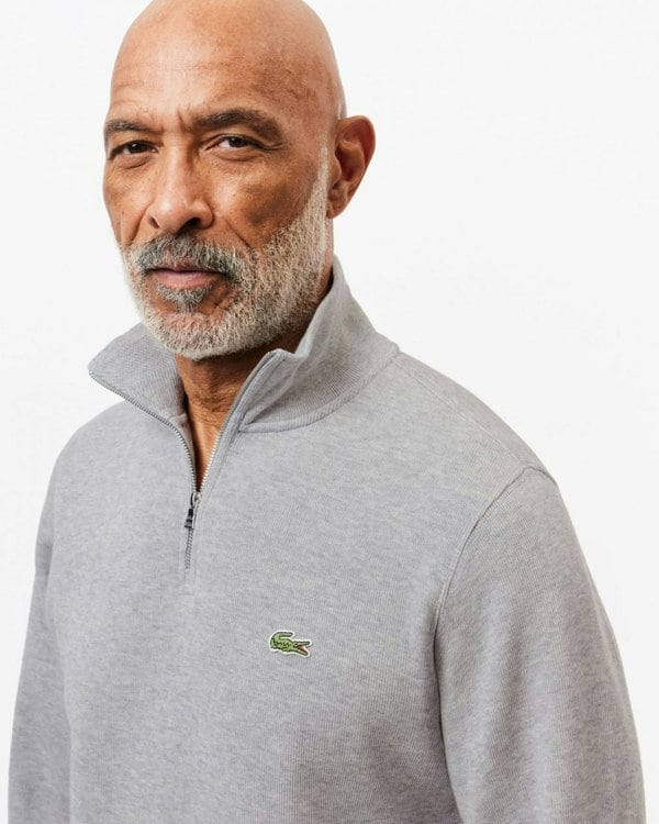 Lacoste Mens Zippered Stand-Up Collar Cotton Sweatshirt in Silver Chine CCA