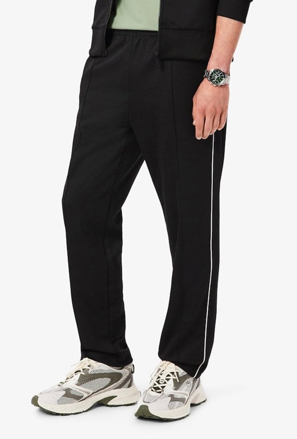 The iconic Lacoste sweatpants get an elegant, modern makeover. Made from a supple, fine, hardwearing interlock piqué fabric with a clean, straight cut and sophisticated finish details, such as the contrast trim.