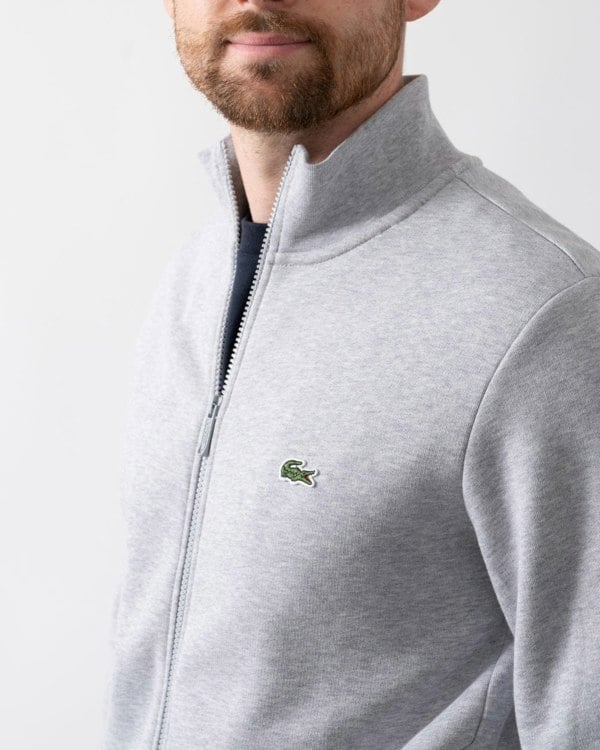 Lacoste Regular Fit Brushed Fleece Mens Zippered Sweatshirt in Silver Chine CCA