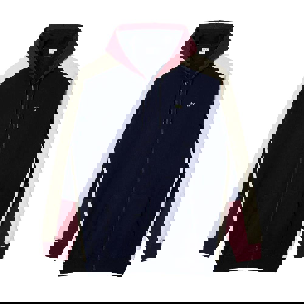 This Lacoste unisex full zip hoodie comes in navy with a contrast colour design and an embroidered logo. Made from 80% cotton and 20% polyester, it has a hooded neckline with an adjustable hood for a practical finish.