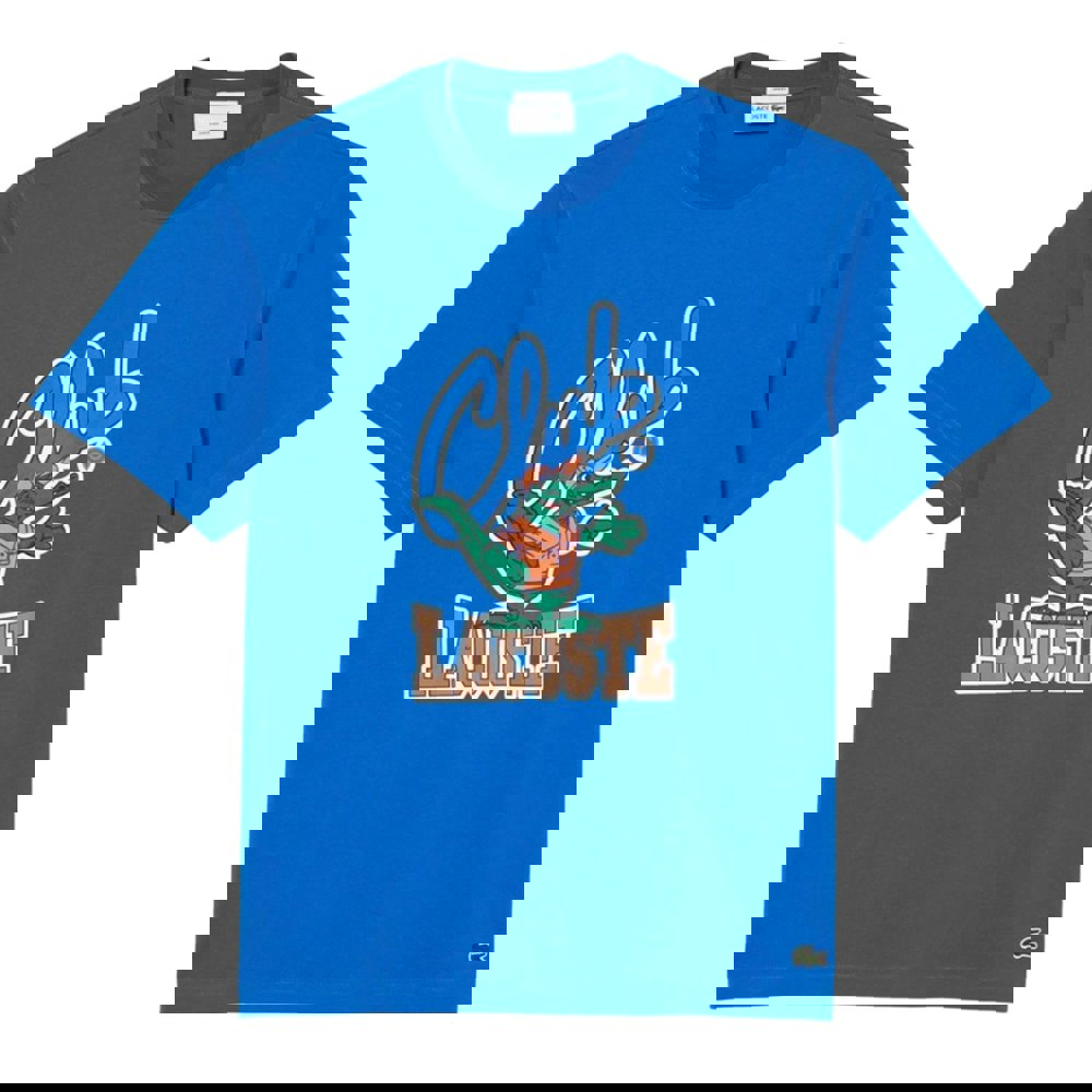 This unisex Lacoste Signature T-shirt is made from 100% cotton jersey with a heavyweight feel. It has a crew neck and short sleeves, finished with a drop shoulder for a relaxed silhouette. The front is detailed with embroidered logo and text elements, keeping the look clean and graphic.