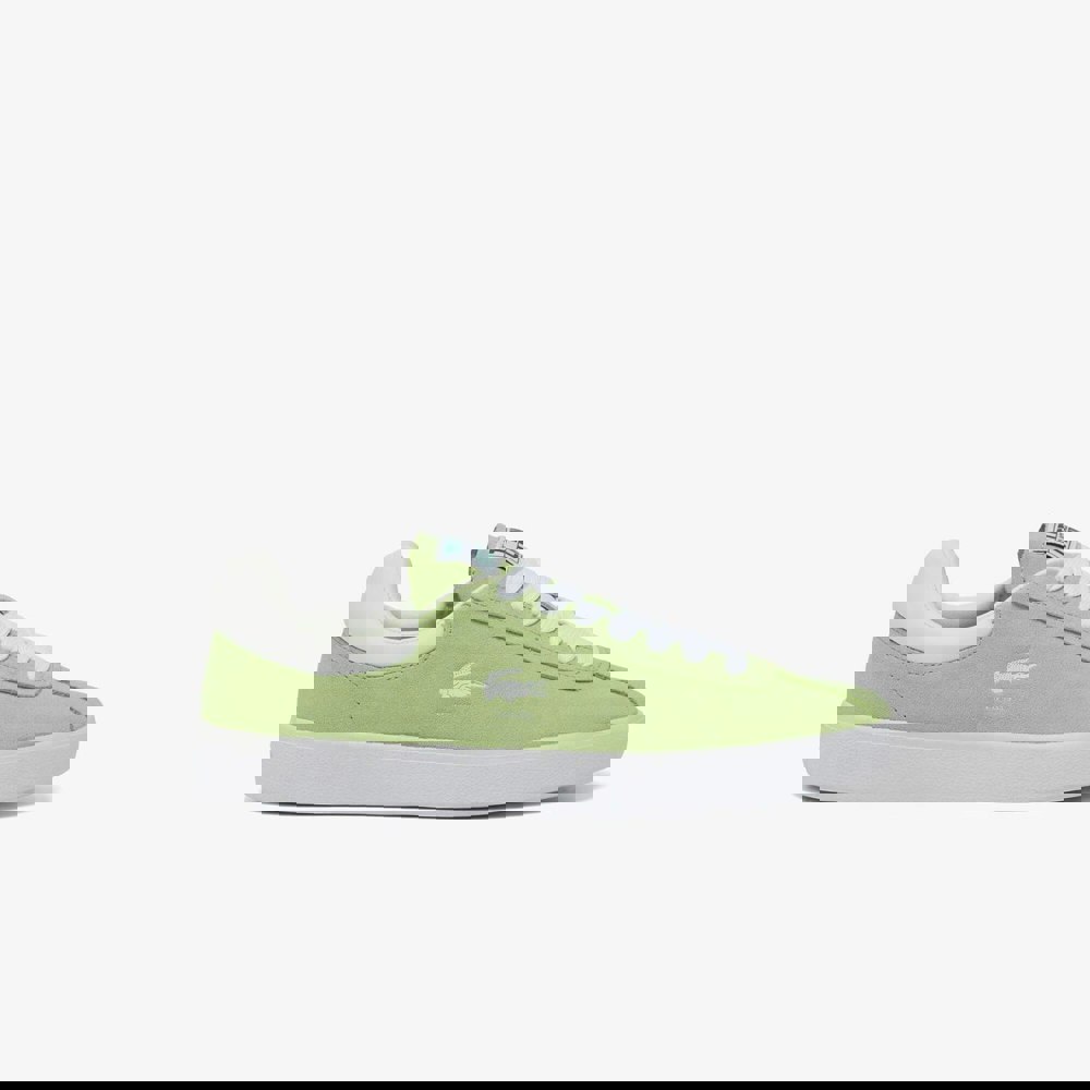 Lacoste Women’s Baseshot Suede Trainers in green and white combine a low-cut profile with a plain finish for a clean, understated look. The upper uses a mix of mesh, plush and suede, paired with a rubber outsole for everyday wear. A round toe and flat sole keep the silhouette classic, while the lace-up fastening secures the fit through seven eyelets.