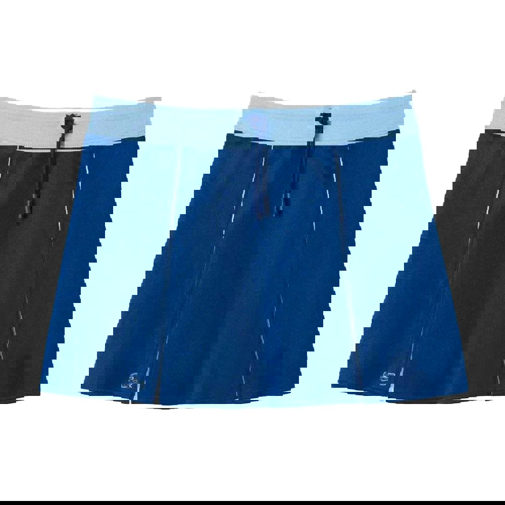 This Lacoste skirt is made from interlock fabric with a blend of 96% polyester and 4% elastane. It comes in a blue and white colour block design with pleated detailing and a logo accent for a clean, sporty look.