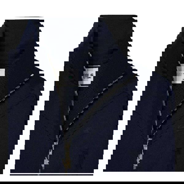 This Lacoste women’s cropped sweatshirt comes in navy with a full zip fastening and a standing collar. Made from 95% polyester and 5% spandex, it has long sleeves and elasticated cuffs for a clean, structured finish. A regular fit keeps the silhouette easy to wear, while side pockets add practical storage.