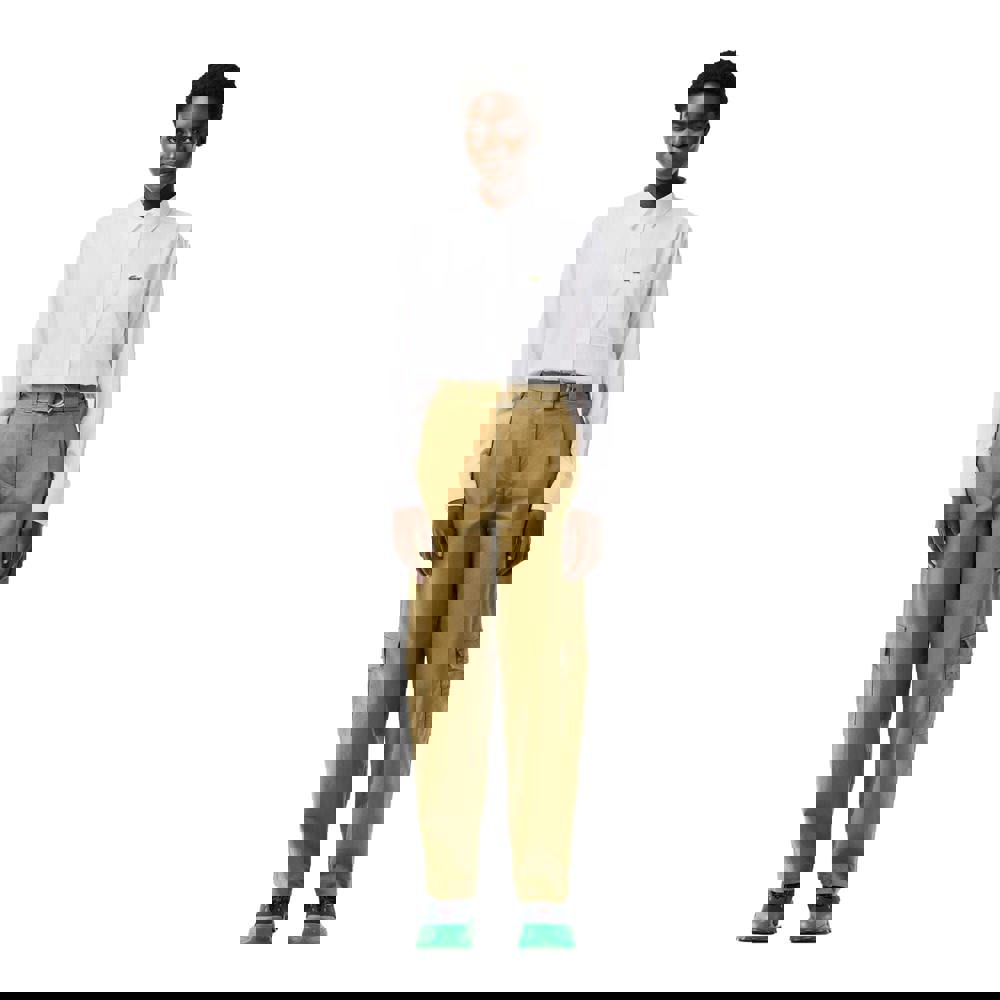 These Lacoste cargo trousers are made from gabardine with a plain finish. The fabric blend combines 97% cotton with 3% elastane. A zip fly fastening and D-ring strap detail complete the waist, while an adjustable waistline allows the fit to be altered.