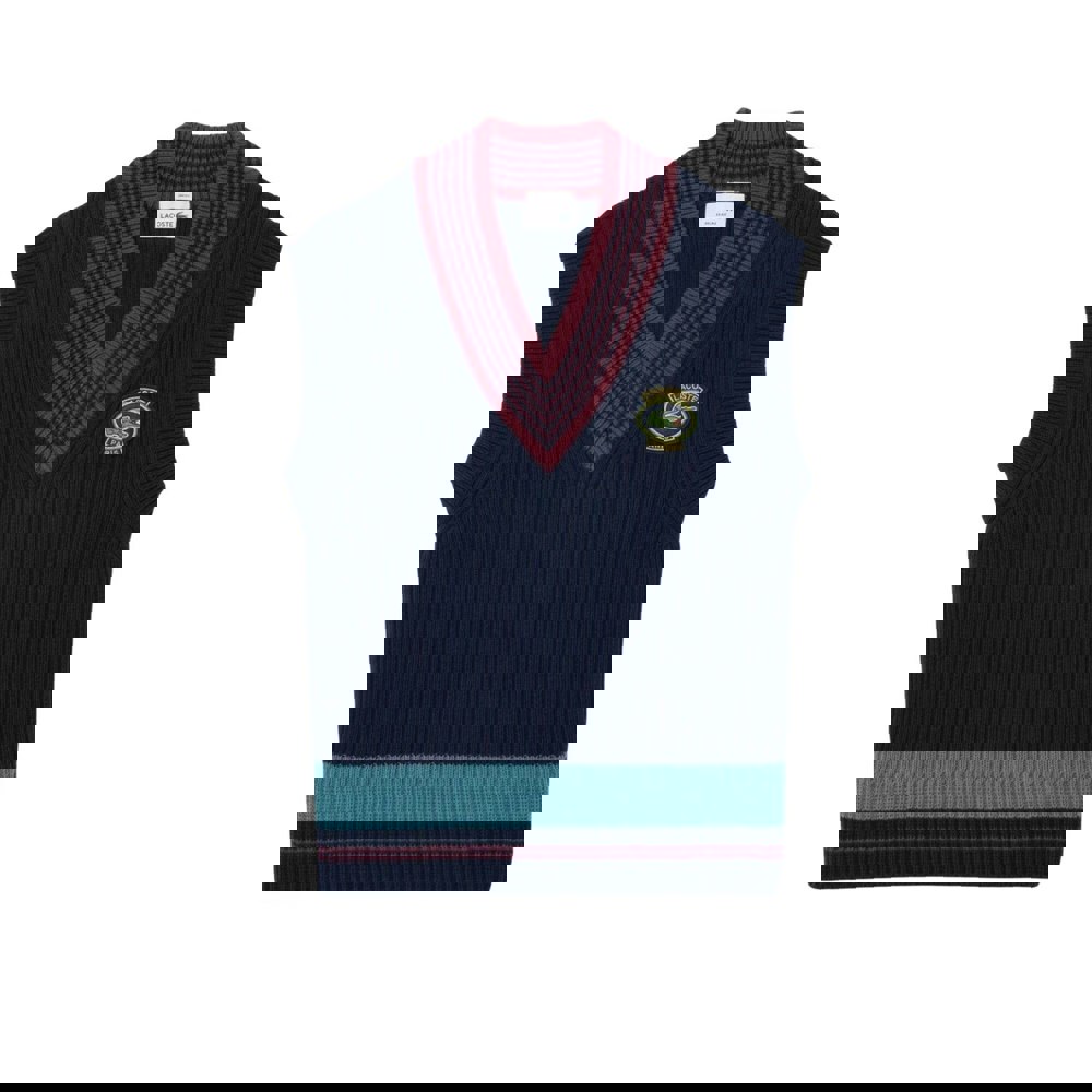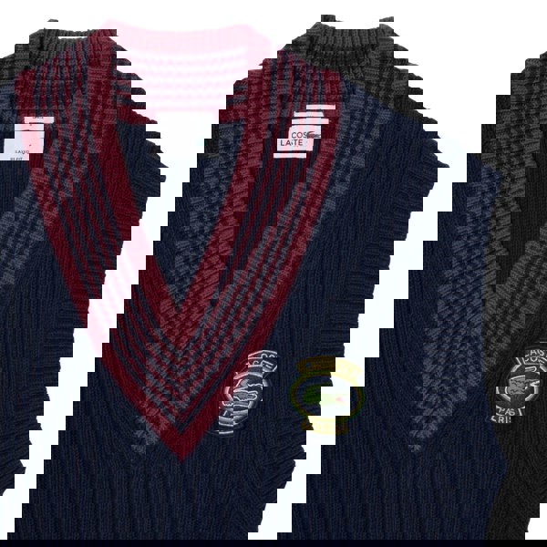 This Lacoste women’s tennis sweater top is made from cotton in a heavy knit construction. The navy design is finished with contrast detailing, ribbed trims and an embroidered logo for a clean, sport-led look.