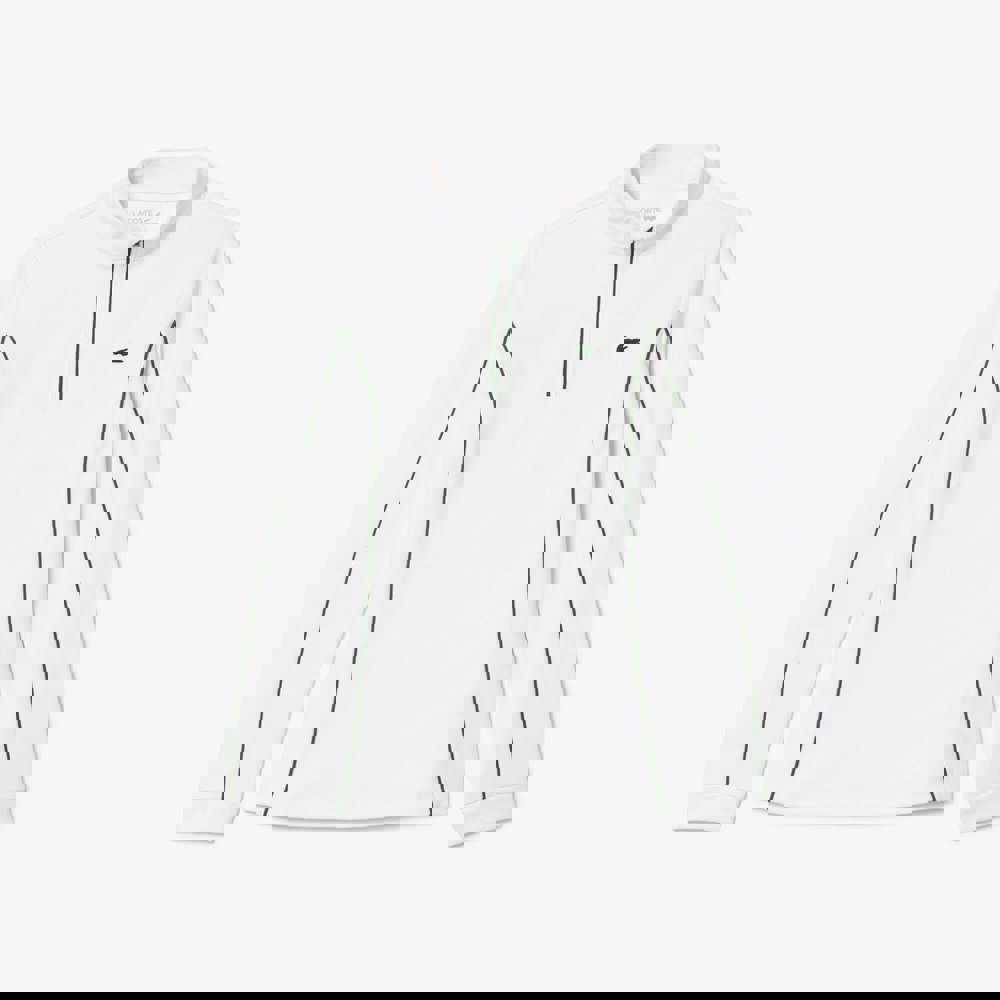 Made from recycled polyester with added elastane, this Lacoste tennis sweatshirt uses a jersey fabric with stretch. The layered construction is paired with a high collar and long sleeves for a clean, sporty profile. A half zip allows adjustable coverage, while the pull-on style keeps the finish streamlined.