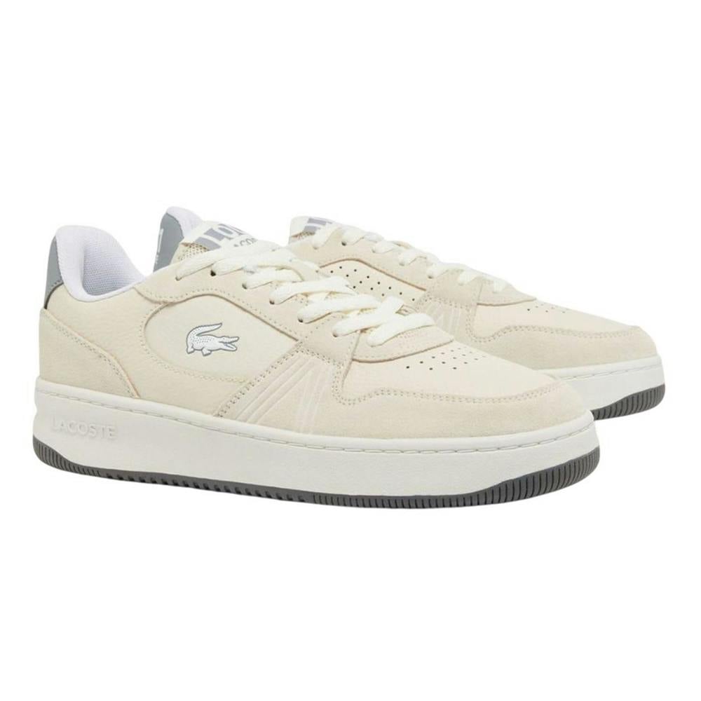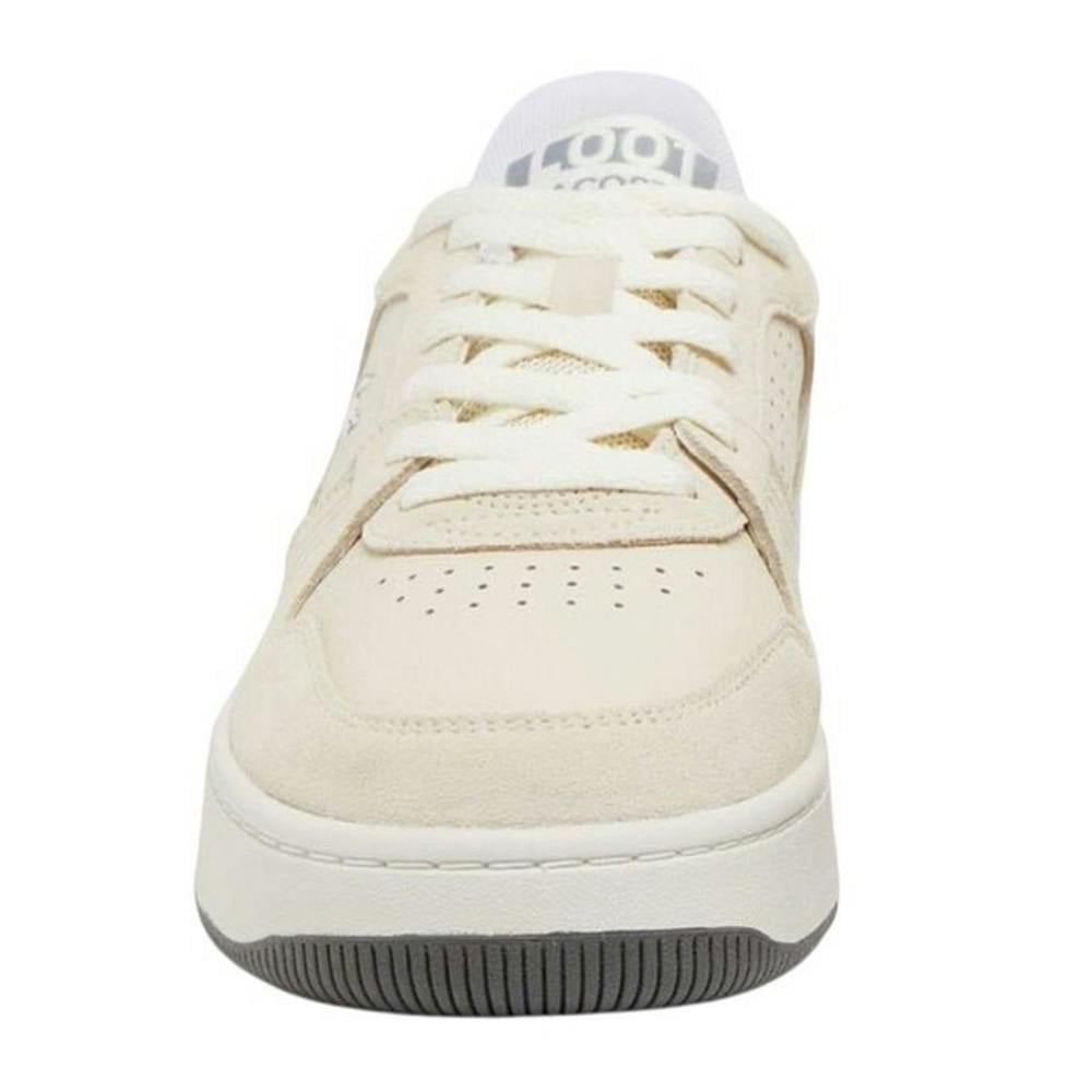 These Lacoste women’s trainers combine a low-cut profile with a chunky flat sole and a round toe. The upper uses a mix of full grain leather and suede with a textured finish, paired with logo detailing and perforated design elements. Lace-up fastening keeps the look classic and secure, while branded accents sit at the heel and tongue.