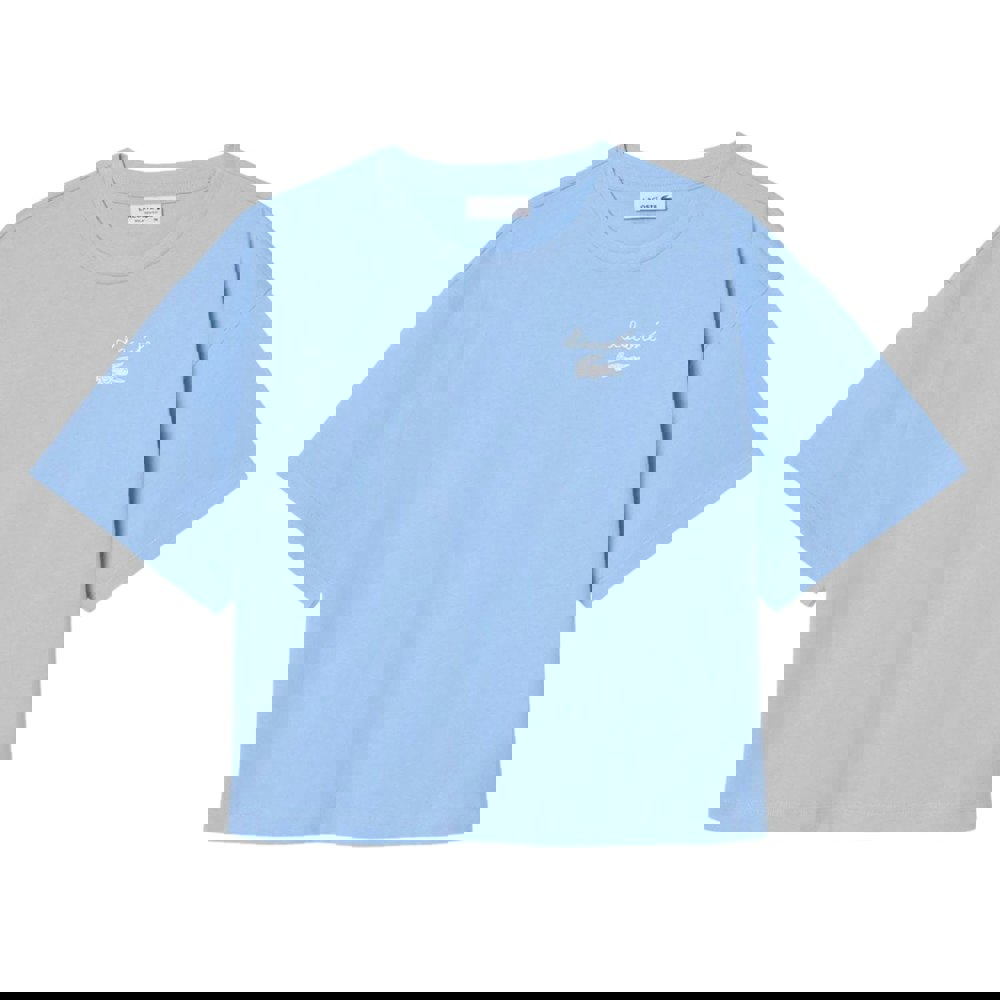 This Lacoste women’s T-shirt is made from 100% cotton in a jersey fabric with a heavyweight finish. The light blue colourway is kept clean with a plain design, finished with an embroidered logo for a subtle branded detail.