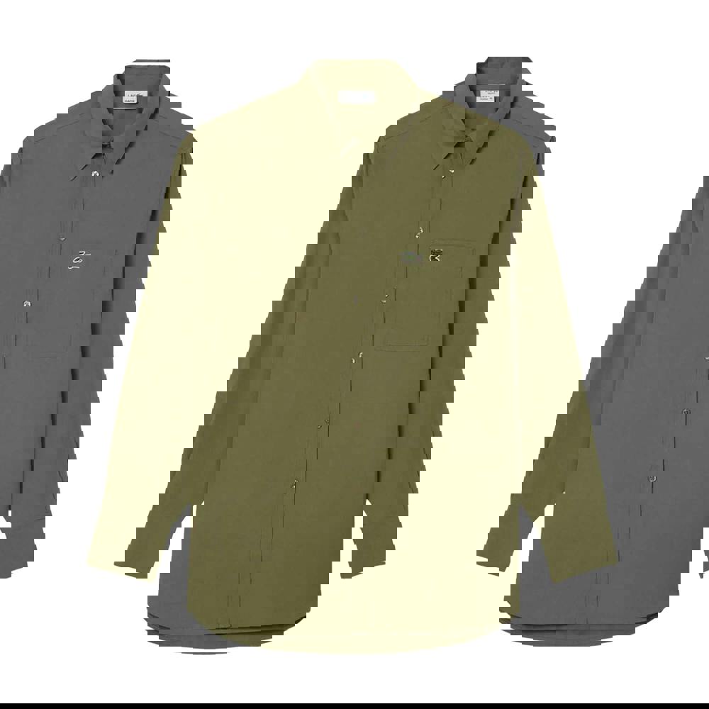 This long-sleeved poplin shirt is made from 100% cotton and finished in khaki green. The plain design is detailed with an embroidered logo and a classic turn-down collar for a clean, structured look.