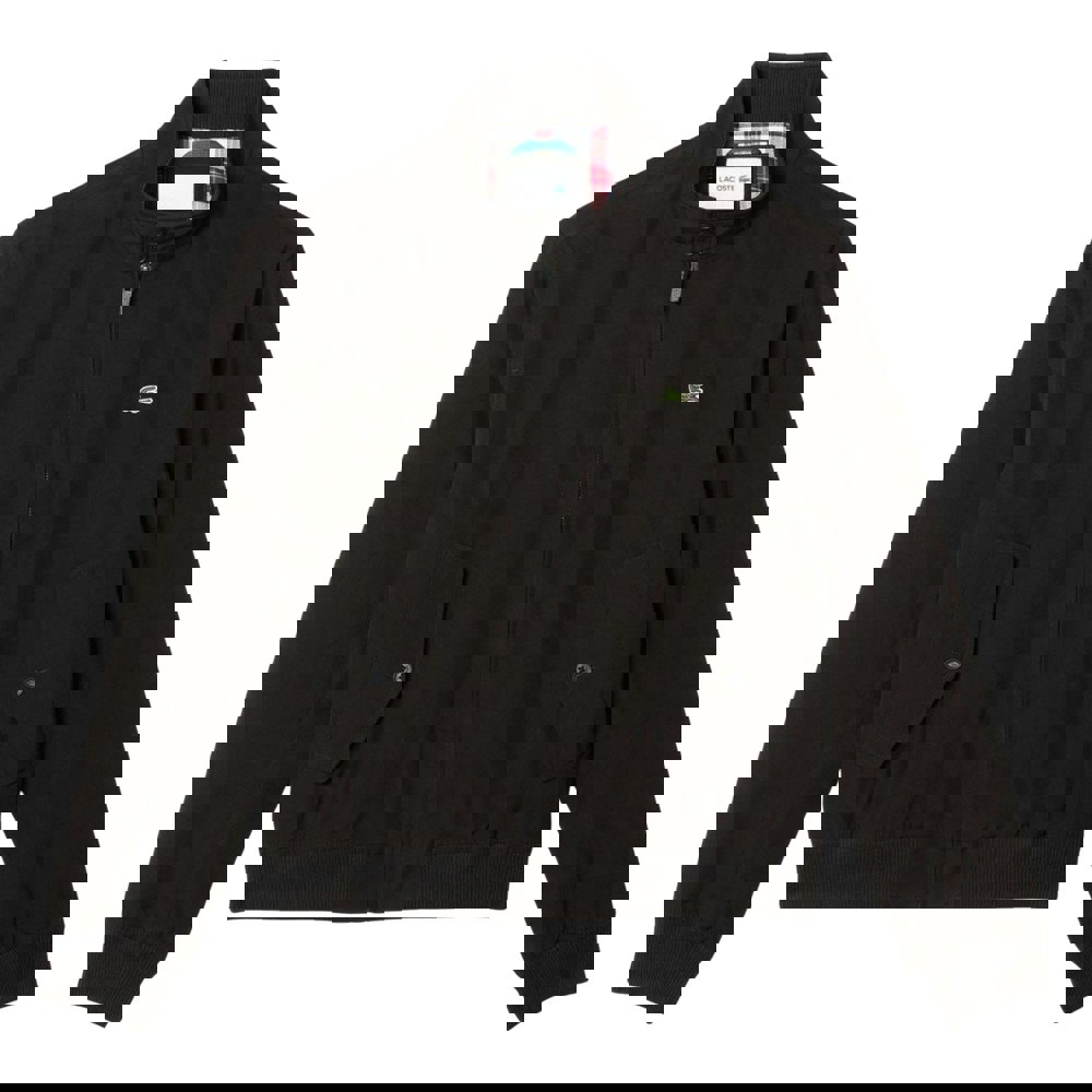 This Lacoste jacket is made from polyester twill with a lightweight, water repellent finish. It fastens with a full zip and has a standing collar with a buttoned neckline for a clean, structured look.