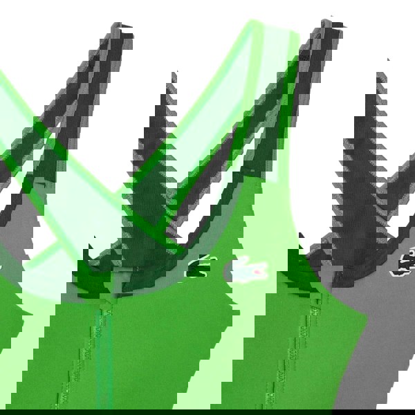 This Lacoste sport bralette is made from jersey fabric with recycled polyester and elastane. It has a colour block design with a logo and a cross-strap back style. A front zip fastening completes the look, while the fabric technology includes breathable, moisture wicking and stretch properties.